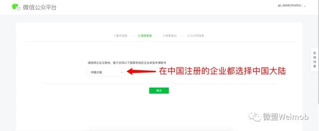 注冊操作路徑:打開微信公眾平臺,點擊右上角立即注冊