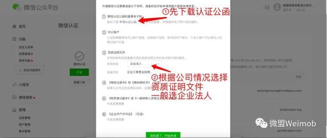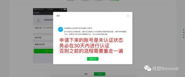 系統認證操作提醒及注意事項 到這一步服務號的申請就完成了,接著是服務號的認證