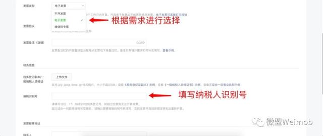 填寫發票信息 注意,非三證合一的需要準備《稅務登記證副本》或《一般納稅人資格證書》